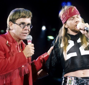As the song’s operatic interlude ended, Axl Rose materialised to sing the hard-rock break. He and Elton finished the song in a duet.