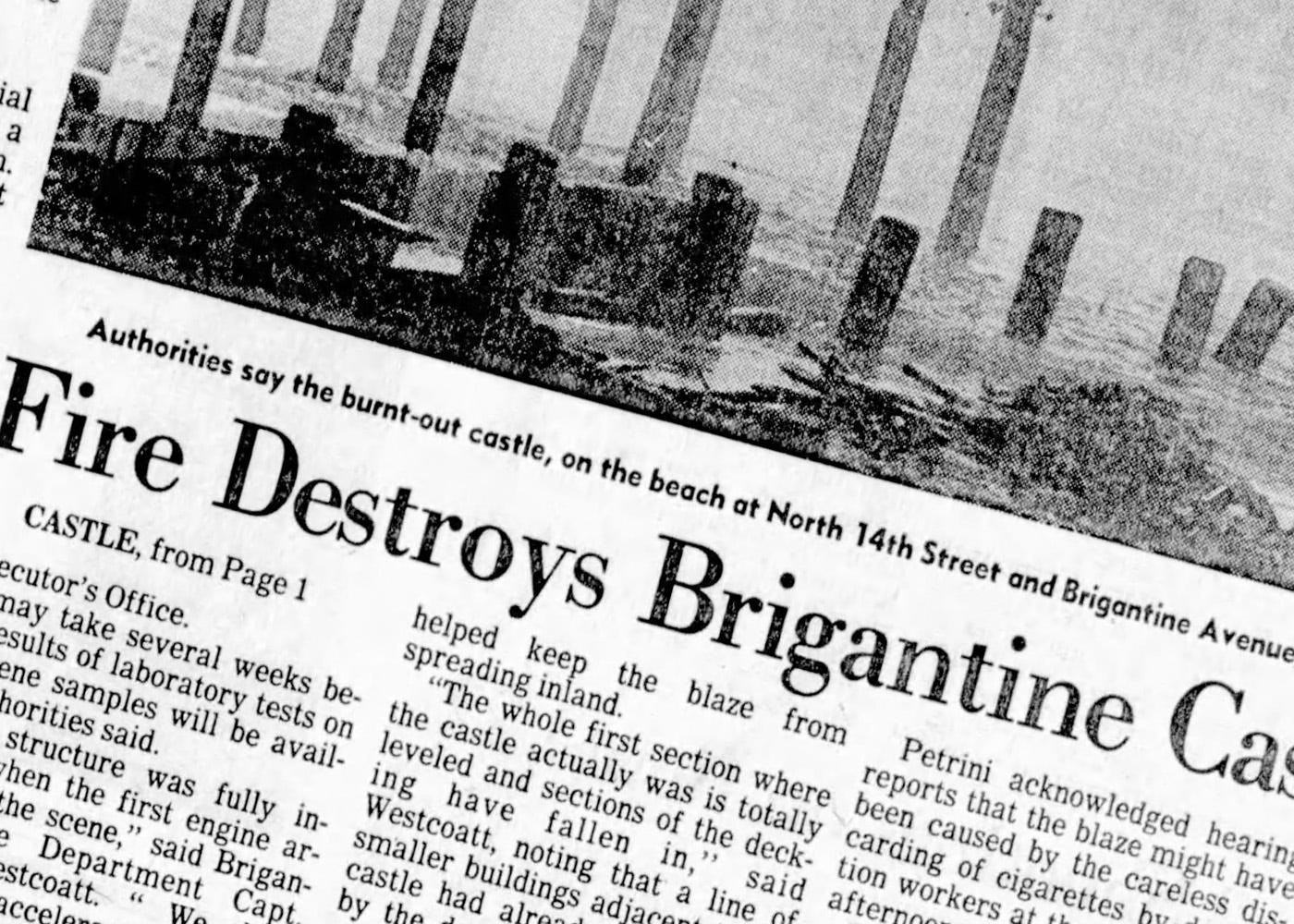 Demolition had started by late 1987, but before it could be completed a fire broke out on the night of September 25, 1987, and destroyed what was left of the castle and much of the pier. Two men were later charged with arson. After the fire, the remains were cleared away, and only pilings were left visible along the shoreline. The site was never rebuilt, and the castle’s disappearance marked the end of that era for Brigantine.