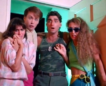 Along for the ride are Kevin’s prudish and irritating girlfriend Amy (Paige Sullivan) and his pals: a nympho named Daphne (Kelley Palmer), her army boyfriend Nick (Billy Frank), and Kyle (Steven Boggs), a horny nerd who is addicted to phone sex lines.