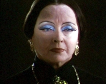 The deliciously evil Madame Sin (Bette Davis) is a cross between a female Dr No and the bad fairy in Sleeping Beauty – a sinister, all-powerful matriarch who glides around her remote Scottish castle dressed in swirling black hostess gowns (her only dash of colour is startling blue eye shadow applied trowel-thick).