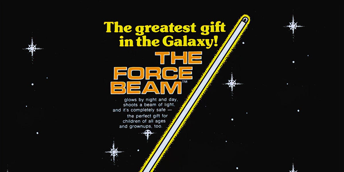 I still remember when my sister spotted the Force Beam toy in a newspaper ad right around the time Star Wars first came out. She held the paper up and showed me, pointing at the photo with a smile because she knew how much I was obsessed with the movie. The ad made it look like the closest thing you could have to a real lightsaber. While the ad was black & white, it still appeared to glowing and dramatic in a way that seemed almost magical to me then. From that moment the image stuck in my head, and I kept going back to it again and again, staring at the paper and imagining what it would feel like to hold one, to actually hold a lightsaber. As Christmas drew closer, I quietly held onto the hope that it would show up under the tree, thinking that if I was lucky enough to get it, there would be no better gift in the world.