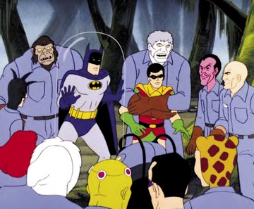 Familiar villains included the Riddler, Bizarro, and Mr Mxyzptlk, while other elements from DC Comics lore appeared, including Wonder Woman’s mother, Queen Hippolyta; the Batcave (complete with Bat-Computer and giant dinosaur); and the returning Supermobile and Fortress of Solitude.