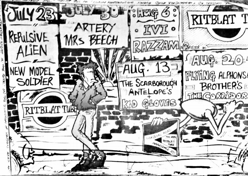 The Sheffield scene was sparked by (ironically) the London punk scene in the hot summer of 1977. Within the space of three months, fanzines had become commonplace, and with them a gradual realisation that the people up on stage weren’t “Rock Stars” but “Human Beings”, and that all you needed was gall and (preferably) some musical talent.