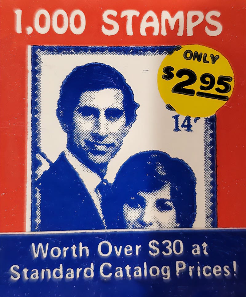 While cheap and common at the time, these matchbooks have since become an affordable collectible in their own right. They are valued both as vintage advertising and as an example of how stamp dealers reached a mass audience outside traditional collector circles. This wasn’t the only offer they were running at the time. I remember a Revolutionary War themed one, but probably the more well-known Kenmore matchbook from the early 1980s featured Prince Charles and Lady Diana, tying the stamp hobby to another global cultural moment.