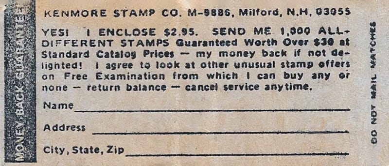 While you might remember the book of stamps, how many of you remember what was inside? It was an order form that that you sent along with your money. My favorite part of the form is the message about not mailing matches. I wonder how often that happened?